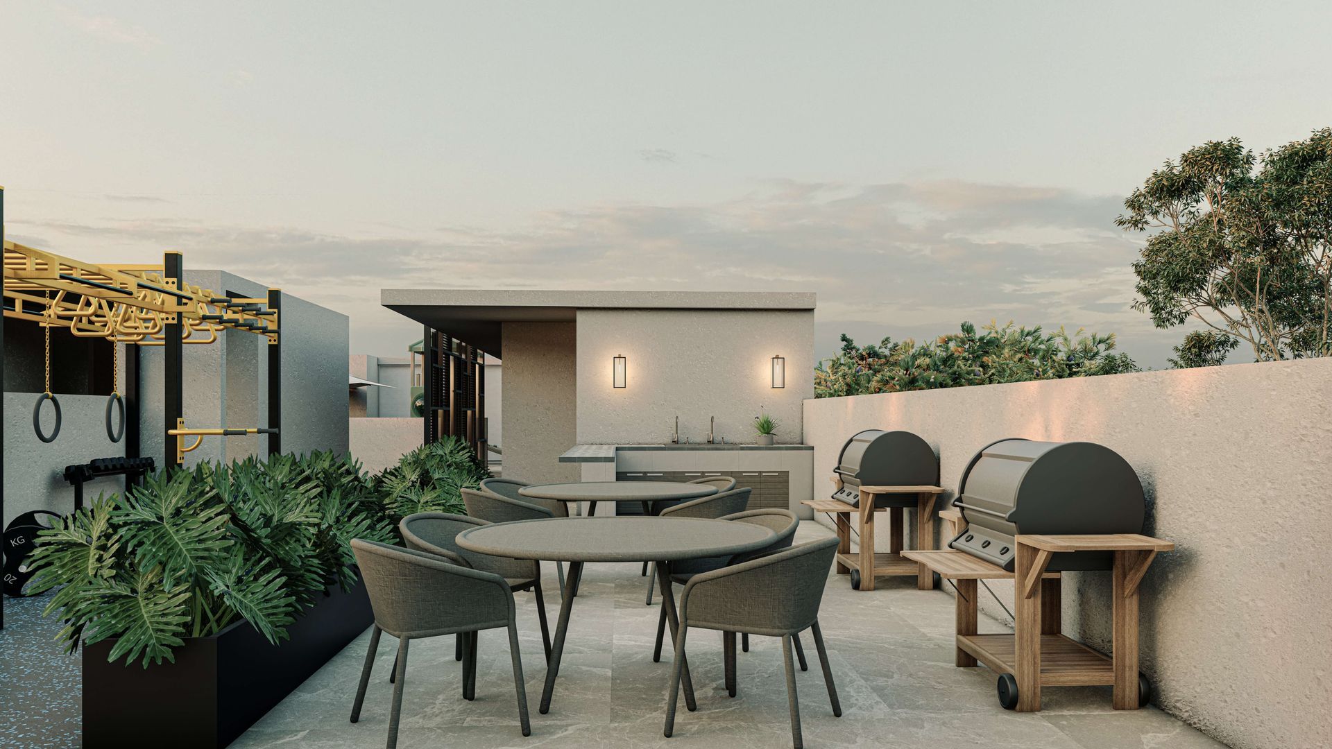 Desarrollado en 6 niveles, cuenta con 18 departamentos de 1 a 3 recamaras, todos diseñados para aprovechar al máximo los espacios y disfrutar de la tranquilidad del hogar. Cuenta con Fire Pit, área de asadores, zona infantil y zona de ejercicio al aire libre.